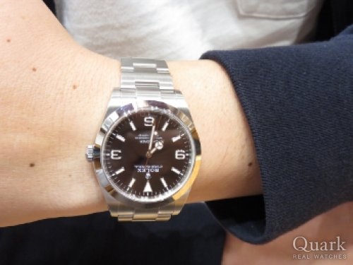 K様 この度はクォーク神戸店をご利用頂き誠に有難う御座います。ご購入頂いたエクスプローラーI Ref.214270は、サイズが39ミリと大きすぎず小さすぎない程良いサイズ感が最大の魅力です。文字盤のインデックス3.6.9部分に夜光が入る最新のモデルで、時間も見やすくなって使いやすいです。日付表示がございませんので、操作性にも優れておりビジネスはもちろんカジュアルシーンまで幅広くお使い頂けます。今後も末永くご愛用頂ければ幸いです。また何かご不明な点などありましたら、お気軽にお問合せ下さいませ。今後ともクォーク神戸店を何卒宜しくお願い申し上げます。 クォーク神戸店 増田