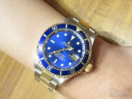 Y様 この度はクォーク神戸店をご利用頂き、誠にありがとうございます。お選び頂きました”青サブ”ことRef.16613はコンビモデルでありながら全体的に落ち着いた色合いですので、より日常使いにも取り入れて頂きやすいモデルです。現行モデルにはない独特の輝きは、このアルミ製ベゼルならではと言えるでしょう!今後はますます貴重になってくるお品ですので、末永く大切にご使用頂ければ幸いです。そのためのサポートにも全力でご対応することをお約束致しますので、今後とも当店を宜しくお願い申し上げます。