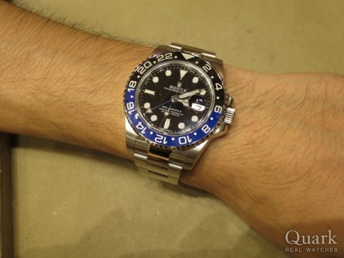 この度はクォーク神戸店をご利用頂き誠に有難う御座います。ご購入頂きました、現行モデルのGMTマスターIIRef.116710BLNRですが、T様のおっしゃる通りツートンベゼルのデザインが特徴的で非常に人気の髙いロレックスのモデルです。これからの様々なシチュエーションで活躍頂けるモデルですので、末永くご使用頂ければ幸いです。また何かご不明な点などありましたら、お気軽にご来店・お問合せ下さいませ。今後とも宜しくお願い致します。 クォーク神戸店 柳原