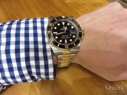 I様、いつもクォーク神戸店をご利用頂きまして誠に有難うございます。黒サブマリーナーは、18金イエローゴールド素材とブラックダイヤルの相性が抜群に良いモデルです。スーツスタイルはもちろん、カジュアルダウンした装いにも似合います!これからの季節には重宝するかと思いますので、日常使いにご使用下さいませ。ブレスレットの無料洗浄を行っていますので、お気軽にお申し付け下さい。今後ともクォーク神戸店を何卒宜しくお願い申し上げます。クォーク神戸店 増田