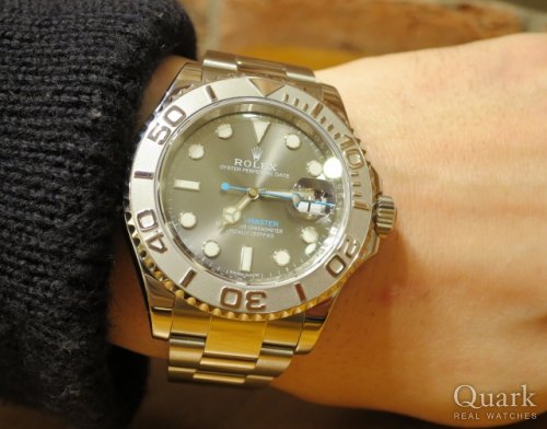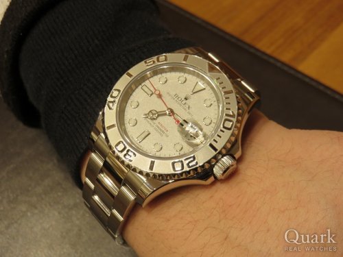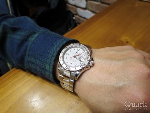 M様、この度はクォーク神戸店をご利用頂きまして誠に有難うございました。ご購入頂きましたヨットマスターロレジウムRef.16622は、ダイヤルやベゼルの素材にプラチナを使用した高級感溢れるモデルです。全体がシルバーで統一され、スポーティーさと美しさを兼ね備えております。M様にとてもお似合いで腕元が輝いておりました!末永くご愛用頂けましたら幸いです。今後もご指名頂けるようしっかりとサポートさせて頂きますので、何かご要望などございましたら私井内までお申し付け下さいませ。また、ブレスレットの洗浄及び調整も無料で行っておりますので、お近くに来られた際には是非遊びにいらして下さい。心よりお待ちしております。   クォーク神戸店 井内
