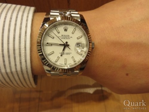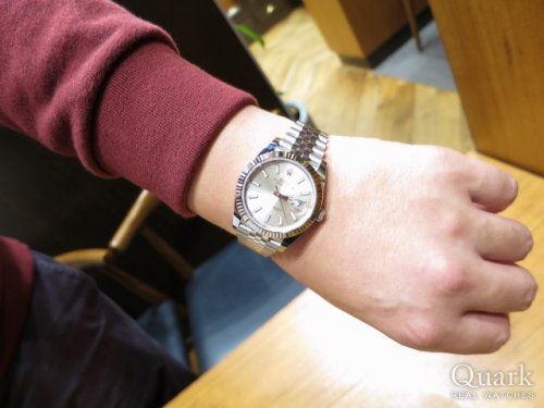 W様、この度はクォーク神戸店をご利用頂きまして誠に有難うございました。新型のデイトジャストでしかも白文字盤は、滅多に入荷がなく何とか仕入れでご対応できて本当に良かったです。白文字盤は、視認性にも優れていますしビジネスシーンでもお使い頂けます。是非、末永くご愛用頂ければ幸いでございます。また、アフターサービスでブレスレットの無料洗浄も行っていますので、お気軽にお申し付け下さいませ。今後ともクォーク神戸店を何卒宜しくお願い申し上げます。クォーク神戸店 増田