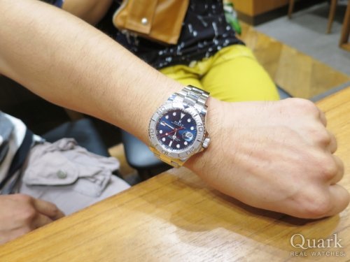 T様、この度はクォーク神戸店をご利用頂きまして誠に有難うございました。ご購入頂きましたヨットマスターRef.116622(青)は、ベゼルにプラチナを使用したラグジュアリーモデルで、高級感は他のスポーツモデルと比べても別格です。文字盤の深いブルーと赤い秒針・モデル表記との色合いのバランスも抜群でとても綺麗です。お持ちの方も少ないモデルですので周りの人と被りにくいのも良いですよね。T様にとても良くお似合いでございました。末永くご愛用頂けましたら幸いです。今後もご指名頂けるようしっかりとサポートさせて頂きますので、何かご要望などございましたら私井内までお申し付け下さいませ。また、ブレスレットの洗浄及び調整も無料で行っておりますので、お近くに来られた際には是非遊びにいらして下さい。心よりお待ちしております。   クォーク神戸店 井内