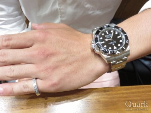 F様、この度はクォーク神戸店をご利用頂きまして誠に有難うございました。ご購入頂きましたサブマリーナーは、日付表示のないスッキリとしたデザインで合わせやすくオン・オフ問わずお使い頂けます。ご愛用中のクロムハーツのリングとの相性も抜群ですね!是非、末永くご愛用頂ければ幸いでございます。また、ブレスレットの洗浄及び調整も無料で行っておりますので、お近くに来られた際には是非遊びにいらして下さい。心よりお待ちしております。クォーク神戸店 増田