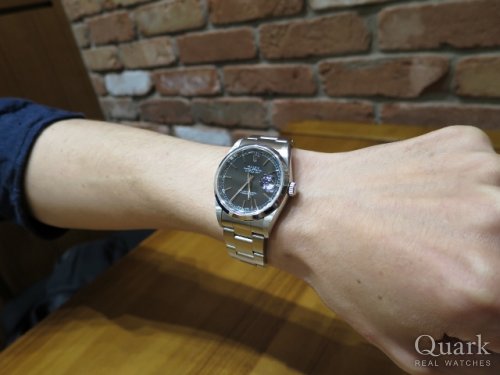 O様、この度はクォーク神戸店をご利用頂きまして誠に有難うございました。ご購入頂きましたデイトジャストRef.16200(黒)は、現行モデルと比較してブレスレットやラグの部分がサテンの仕上げになっており、嫌味な派手さなども無くスッキリとした印象を与えてくれます。シンプルなデザインで合わせやすく様々なシーンでお使い頂けるモデルです。O様の腕元にフィットしており、とてもお似合いでございました。末永くご愛用頂けましたら幸いです。今後もご指名頂けるようしっかりとサポートさせて頂きますので、何かご要望などございましたら私井内までお申し付け下さいませ。また、ブレスレットの洗浄及び調整も無料で行っておりますので、お近くに来られた際には是非遊びにいらして下さい。心よりお待ちしております。  クォーク神戸店 井内
