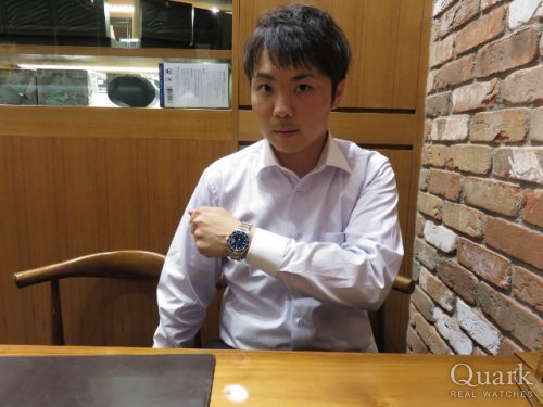 K様、この度はクォーク神戸店をご利用頂きまして誠に有難うございました。ご購入頂きましたモデルは、エンボス加工が施されたプラチナ製のベゼルに深い海の色を連想させるサイレン仕上げのブルー文字盤が絶妙にマッチしており、爽やかさと高級感が光る1本です。これからのシーズンに大活躍すること間違い無しです。K様にとてもお似合いで本当にかっこよかったです。末永くご愛用頂けましたら幸いでございます。今後もご指名頂けるようしっかりご対応して参りますので、今後共クォーク神戸店を宜しくお願い致します。また、ブレスレットの洗浄及び調整なども無料で行っておりますので、近くに来られた際は是非遊びにいらして下さい。心よりお待ちしております。  クォーク神戸店 井内