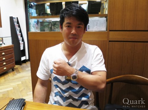 I様、この度もクォーク神戸店をご利用頂きまして誠に有難うございます。今回もご購入のお手伝いが出来ましたことを、嬉しく思います。ご希望のグレーローマ文字盤をご用意出来ず、申し訳御座いません。カジュアルに合わないイメージが御座いますが、派手派手しさも無く、様々なシーンで活躍が期待出来るモデルです。末永くご愛用頂けましたら幸いで御座います。今後とも何卒宜しくお願い致します。 クォーク神戸店 店長 三瀬