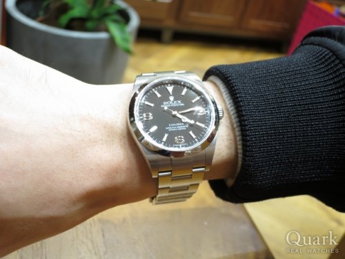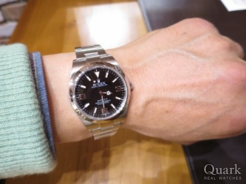 N様、この度はクォーク神戸店をご利用頂きまして誠に有難うございました。シンプルなデザインのエクスプローラーは、どのような場面でも合わせて頂ける万能モデルです。以前から探されていたとのことですが、2016年に出たばかりで、店頭でまだまだ見かける機会が少ない夜光付き新ダイヤルを、タイミング良く見つけられご購入に結びついた、その出会いに私も大変嬉しく思っております。お時計を着けられた際のN様の笑顔がとても印象に残っております。末永くご愛用頂けましたら幸いでございます。今後もご指名頂けるようしっかりご対応して参りますので、今後共クォーク神戸店を宜しくお願い致します。また、ブレスレットの洗浄及び調整なども無料で行っておりますので、近くに来られた際は是非遊びにいらして下さい。心よりお待ちしております。 クォーク神戸店 井内