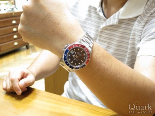 K様、この度はクォーク神戸店をご利用頂きまして誠に有難うございます。また、お忙しい中ご来店頂き感謝申し上げます。お選び頂いたGMTマスターは、短針が単独で稼働し24時間ベゼルと組み合わせれば最大3ヵ国の時間を知ることが出来ます。非常に使いやすくて実用性も高いので、ビジネスシーンにもガンガンお使い頂けます。まさに一生モノに相応しい1本ですので、末永くご愛用頂けましたら幸いで御座います。今後ともクォーク神戸店を何卒宜しくお願い申し上げます。 クォーク神戸店 増田