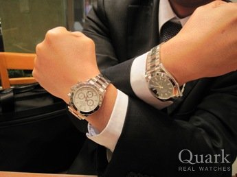 I様(左側) 今回、初めての購入。来年は2本目行きます!! K様(右側) ロレ病に感染中です…次はデイトナ行きます!!その時は、宜しくお願いします!!