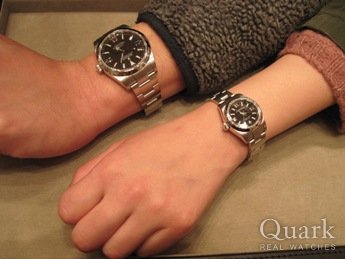 結婚の記念で婚約指輪の代わりに購入しました。 ペアで常に着用でき、長く使い続けられるものを探した結果、ロレックスを選びました。 モデルは同じものでペアにするのではなく、 デザインが近いもので検討してこのモデルにしました。