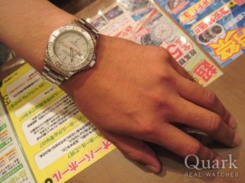 今回でクォークさんを利用するのは4回目になります。クォークさんには、いつも親切・丁寧な接客に関心すると共に安心感を感じます。今回、8Pダイヤとかなり迷いましたが、普段使いにも使いやすい点と最終的には価格で決断しました。クォークさんの価格には、いつも驚かされます。このデイトナも大切に使っていきたいと思います。いつか文字盤を8Pダイヤに交換することがありましたら、その時は宜しくお願いします。