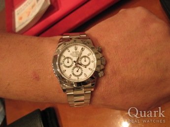 ロレックスは今回で3本目になりますが、今、考えると最初からデイトナを購入しとけば良かったと思います。円高で値段が安くなったことと12年保証セールが、私を後押しました。白文字盤に決めたのは、黒だと夏場に重くなるところです。