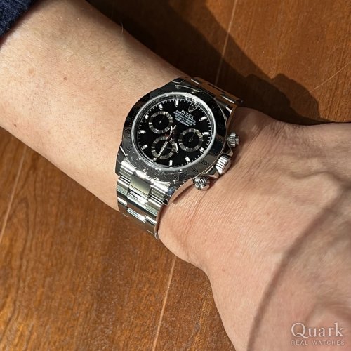 H様、いつも弊社をご利用いただきましてありがとうございます。前回のデイトナコンビRef.116503に続きデイトナステンレスRef.116520ご購入ありがとうございます。H様がおっしゃっていた通り、見事にデイトナ沼にハマりましたね。Ref.116520はロングセラーモデルにつきマイナーチェンジも多いモデルです。後期型の新型バックルの装着感と、インダイヤルの煌びやかさに惹かれて今回ご購入いただきましたが、実用性とエレガントさを兼ね備えた最高のモデルだと思います。またお気軽に遊びにいらしてくださいませ。スタッフ一同お待ちしております。今後とも末永いお付き合いのほどよろしくお願いいたします。