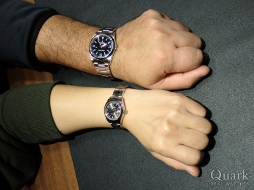 初めてのロレックスですが、ペアに近い文字盤色を合わせて購入しました。デザインもシンプルでどのシーンにも合いそうなので、とても気に入っています。