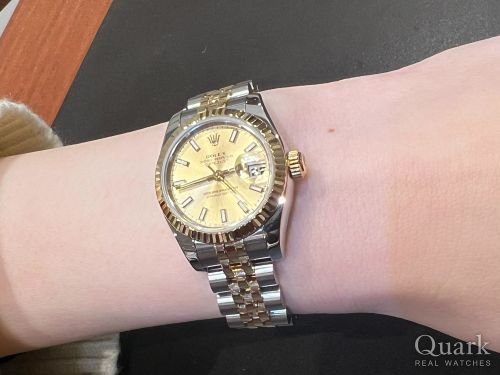 I様 この度は数ある時計店からクォーク名古屋駅店をご利用いただき誠にありがとうございます。ご購入いただきました『Ref.279160』ホワイトローマダイヤルはデイトジャストの2025年式の個体です。魅惑的なホワイトローマは清廉さと品格さを兼ね備え、ブレスには堅牢性に優れるスチールが用いられているモデルでございます。またこちらのモデルはレディースサイズの28mmケース径となり、I様にもお似合いのお時計はI様にとって自慢の一本となると存じます。またブレス洗浄も無料で行っておりますので、お近くにお越しの際は遊びにご来店ください。今後、お使いいただく上で何かご不明な点等ございましたら、また久保までご連絡お願い致します。今後とも末永いお付き合いの程よろしくお願いいたします。