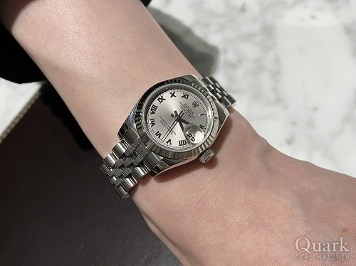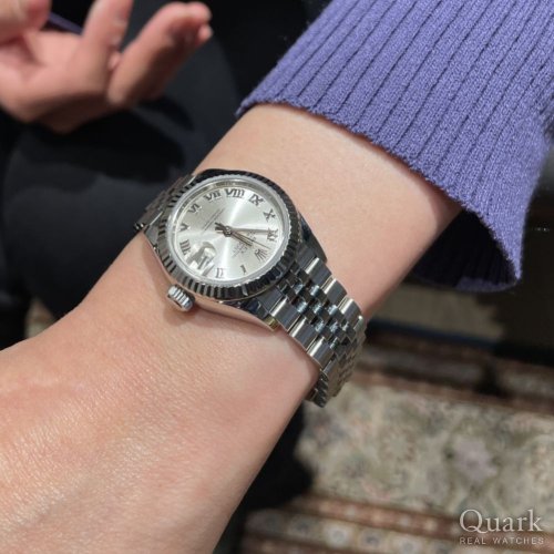 シルバー系でローマ数字の文字盤を探していました。26ミリ径の時計は着けた時に大きすぎず、女性らしさがあって気に入りました。フルーテッドベゼルにジュビリーブレスという定番デザインがいいですね。