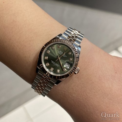 Y様 この度は数ある時計店の中からクォーク上野本店をご利用いただき誠にありがとうございます。初ROLEXおめでとうございます!ご購入いただきましたRef.279171NG(白)は美しいカッティングが施されたフルーテッドベゼルとブレスレット中央パーツに18Kピンクゴールドを使用しており、日本人の肌に馴染みやすい優しい色合いが特徴的なモデルでございます。素材の18Kピンクゴールドは、ロレックスが独自に開発した、ピンクゴールドに少量のプラチナを配合した「エバーローズゴールド」を採用しており、従来の18Kピンクゴールドと比較し、色の劣化に対する耐久性が増し、まさに「エバー(永遠)」の名に相応しい素材となっております。ブレスレットの洗浄及び調整も無料で行っておりますので、お近くにお越しの際は遊びにいらしてくださいませ。お使いいただく上で何かご不明な点等ございましたら、また林までご相談ください。今後とも末永いお付き合いの程よろしくお願いいたします。