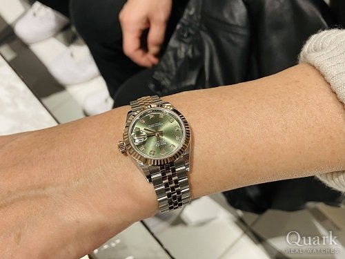 W女士,非常感谢您和您的家人光顾夸克沙龙大阪店。恭喜您终于寻找到您喜欢的手表款式,圈口镶钻的黄金间金款手表非常搭配您的气质!能够帮助您选购这款手表,我感到非常的开心,也很荣幸。希望您可以长久的使用这款手表,也希望它可以给您带来很多美好的回忆!下次来大阪玩的时候,非常欢迎您再次光临夸克沙龙大阪店。