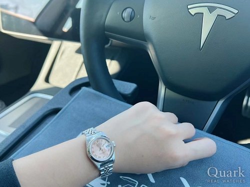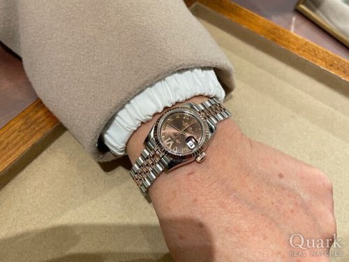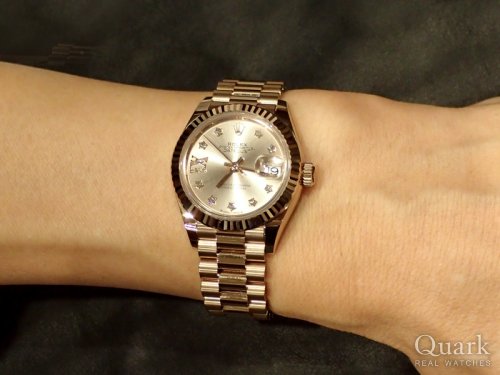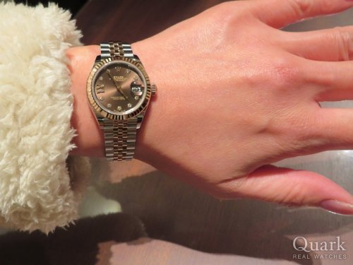数年前からエバーローズゴールドのデイトジャストに心惹かれていました。その中でもサンダスト文字盤との組み合わせの上品な美しさが気に入っています。
