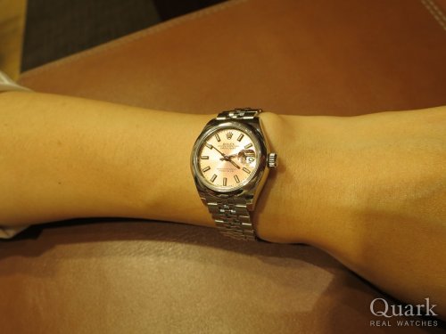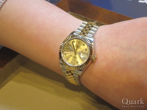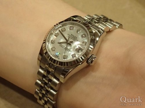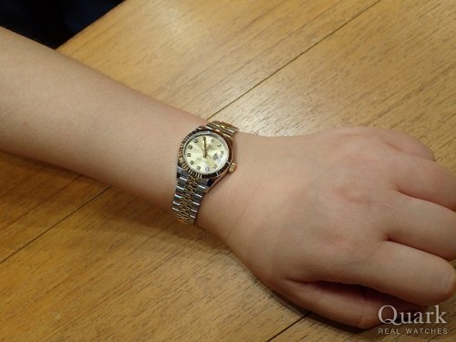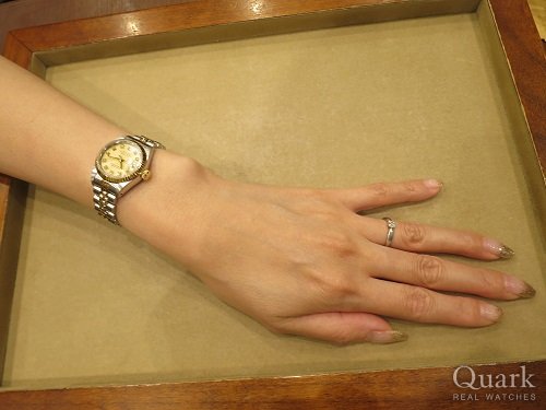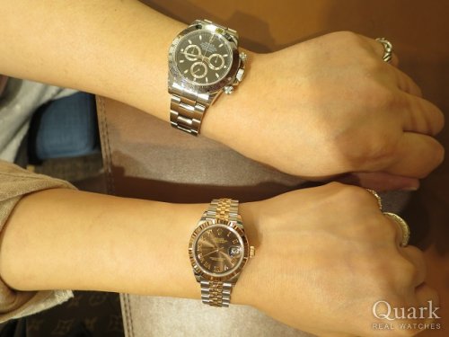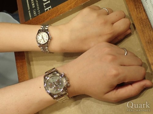 N様 この度はクォーク仙台店をご利用くださいまして誠にありがとうございます。26mmの小振りなデザインに、華やかに演出してくれるシェルダイヤル、素敵でございますね。上品でありながらも可愛らしい雰囲気がN様に大変お似合いでございます。生産終了しておりましたモデルでございましたので、このタイミングで、まさかの2本お見比べができるとは、私がビックリしております(笑)。N様の熱い想いのおかげでございますね。同じシェル模様はふたつとしてございません。腕時計としてはもちろん、アクセサリーのひとつとしてもお楽しみくださいませ。今回は結婚記念日のお祝いとのこと、誠におめでとうございます。優しいご主人様からのプレゼントなんて、羨ましい限りでございます。カワイイお子様にも癒されました~、N様の幸せオーラで私のお腹はいっぱいでございます♡いつまでもN様ご家族の大切なお時間を刻んでくれますよう、私もしっかり応援いたしますので、万が一、気になることなどがございましたらいつでもご連絡くださいませ。ブレス洗浄、サイズ調整を店頭にて無料で承っておりますので、またご家族揃って遊びにきてください。もちろん、ご主人様のもう一本へのご相談も随時お待ち申し上げております(笑)!最後にひとこと、お子様にブンブン振り回されないように、ロレックスはお子様の手の届かないところに保管してください(笑)。それでは今後とも末永いお付き合いのほど宜しくお願い申し上げます。