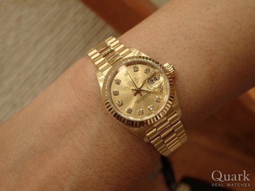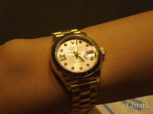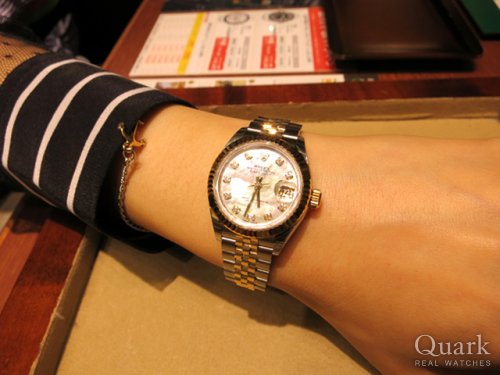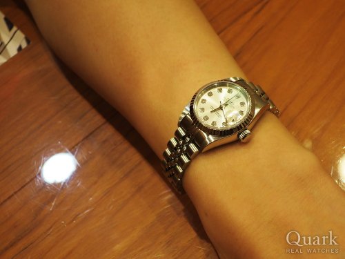 綺麗なシェルダイヤルにダイヤモンドの輝きが決め手です。