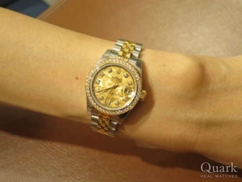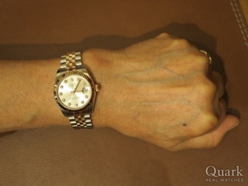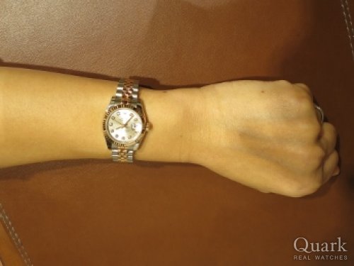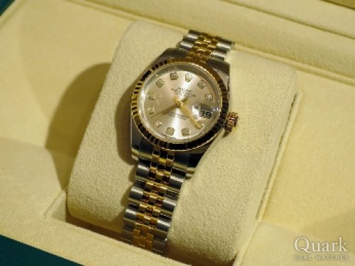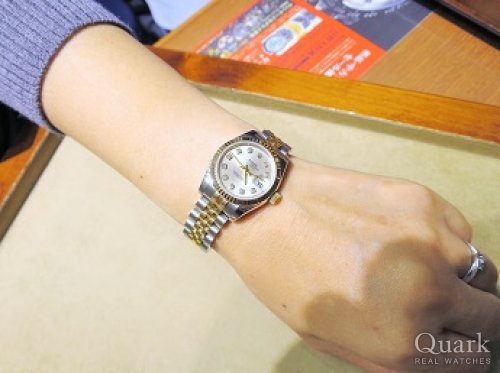 K様、この度はクォーク銀座888店をご利用頂きまして誠に有難うございました。ご購入頂きましたお時計は小さくシンプルながらもシルバーの文字盤とインデックスの10Pダイヤ、煌びやかな18Kイエローゴールドが最上級の高級感を腕元で演出してくれるご結婚10周年というお二人の記念として相応しいモデルです。お二人の楽しそうに会話をされている幸せそうな表情を見て、私もとても幸せな気持ちになりました。楽しい時間を有難うございました。末永くご愛用頂けましたら幸いでございます。今後共クォーク銀座888店を宜しくお願い致します。また、ブレスレットの洗浄及び調整なども無料で行っておりますので、近くに来られた際は是非遊お気軽にお立ちよりください。心よりお待ちしております。