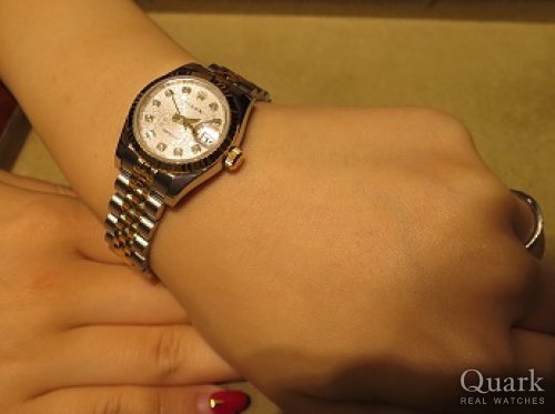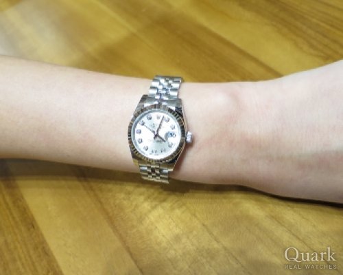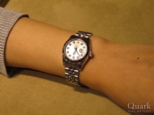 I様、この度はクォーク神戸店をご利用頂きまして誠に有難うございました。ご購入頂きましたモデルは、光沢のあるシルバーの文字盤に10ポイントのダイヤを配置し、ベゼルにはホワイトゴールドを使用しております。全体的にお色目が統一されており、派手すぎず、控えめでいて上品さもあるので、長い間飽きることなくお使い頂けるモデルだと思います。I様にとても良くお似合いでしたので、自信を持ってオススメさせて頂きました。末永くご愛用頂けましたら幸いでございます。楽しいお時間を有難うございました。今後もご指名頂けるようしっかりご対応して参りますので、今後ともクォーク神戸店を宜しくお願い致します。また、ブレスレットの洗浄及び調整なども無料で行っておりますので、近くに来られた際は是非遊びにいらして下さい。心よりお待ちしております。   クォーク神戸店 井内