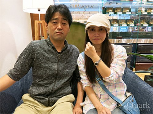 S様 この度はクォーク名古屋店をご利用頂き、誠にありがとう御座います。ご主人様からの素敵なサプライズプレゼントですね。とっても嬉しそうなお気持ちが表情から伝わり、私自身もご担当をさせて頂く事が出来、嬉しく感じました。モデルや素材でも悩まれましたが、S様が一番気に入られた時計なので、ご主人様も嬉しいはずです!海外にお住まいなので、中々ご来店も難しい事と思いますが、日本に戻られた際は、ブレス洗浄を兼ねて遊びにいらして下さい。お使い頂く中で、ご不明な点等が御座いましたら、いつでもご連絡下さいませ。今後とも末永いお付き合いの程、宜しくお願い致します。