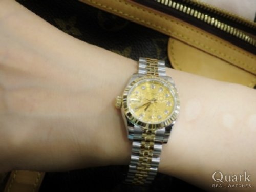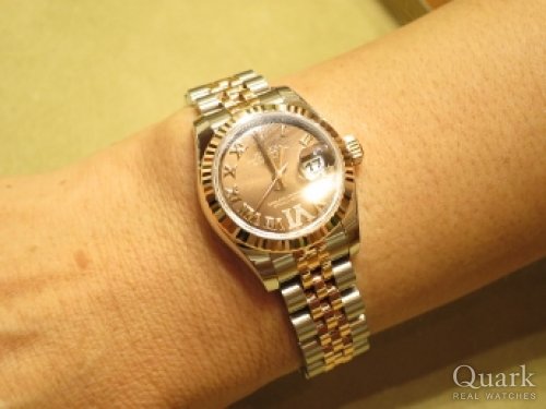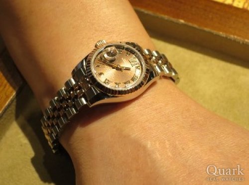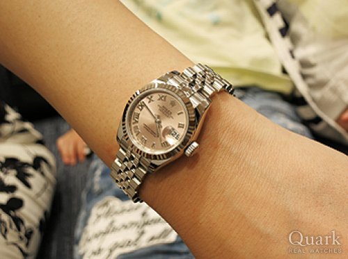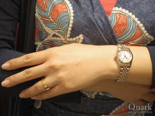 S様 この度はクォーク名古屋店をご利用頂き、誠にありがとう御座います。たまたま通りがかりでお立ち寄り頂き、ご主人様の男らしいご購入に私自身も驚きました。ご主人様からの本当に素敵なプレゼントですね。お選び頂いたデイトジャスト ピンクローマ文字盤は、ロレックスを代表するデザインとなり、いつまでもご愛用頂けるモデルです。ピンクの文字盤は優しい色合いとなり、女性から支持の高い人気のダイヤルです。S様の雰囲気にとてもお似合いでした。今後ご愛用される中で、ご不明な点等が御座いましたら、私までご相談下さい。また栄にお越しの際は、ブレス洗浄を兼ねて遊びにいらして下さいませ。今後とも末永いお付き合いの程、宜しくお願い申し上げます。