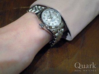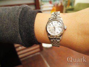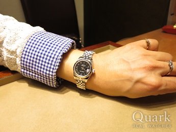 正規店でデイトジャストのピンクローマとブラックローマの2モデルを検討していましたが、クォークさんの12年保証とオーバーホールの技術料3回分無料などのサポートに魅力を感じ購入しました。
