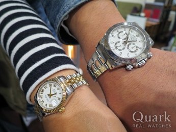 S様 この度はクォーク梅田店でご購入頂きまして誠にありがとうございます。コンビタイプのピンクゴールドの方がゴージャスには見えますね。煌びやかな感じがとても良くお似合いでした。ご主人様からのプレゼントだなんて本当に羨ましい限りです。大事に使えそうですね!たくさんお時計をお持ちだという事なので色々使い分けて頂き楽しんで頂けたらと思います。又大阪に来られた際は、是非お越し下さい。今後共クォークを宜しくお願い致します。 クォーク梅田店 大浦