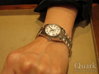 S様 この度はクォーク横浜店にてご購入頂き、誠にありがとうございました。ピンクのデイトジャスト、色白なS様に本当に似合ってました!羨ましい!シャンパンのデイトジャストの高級感とは違い、ピンクは柔らかく優しいカラーですので、雰囲気が変わりますね。とても良いお買い物だったと思います。大切なロレックスを末永く安心してご愛用頂けますよう、しっかりサポート致しますので、今後とも宜しくお願い致します。またブレス洗浄やポルタへのお買い物の際など、お気軽にお店にお立ち寄り下さいませ。またお会い出来る日を楽しみにしております。 クォーク横浜店 長本