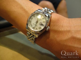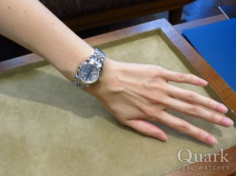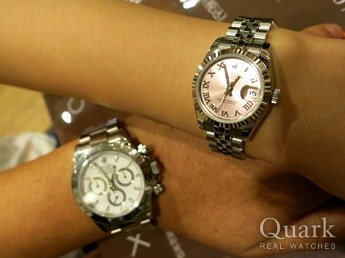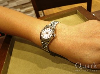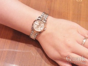 最初はピンクゴールドのコンビを検討していましたが、入荷が無いということで、この時計に妥協しましたが、今は逆にこれにして良かったと満足してます。常に在庫状況を連絡してもらい、丁寧な対応の店員さんには感謝してます。今回が2回目の利用ですが、またクォークさんで買いたいです。