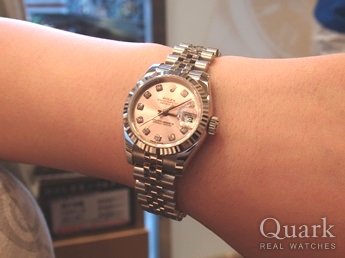 W 様 いつも私共クォークをご利用頂きまして誠に有難う御座います。デイトジャスト Ref.179174G(ピンク)は、女性に大人気のモデルです!!W 様にとてもお似合いでした!!ブレス調整と洗浄は無料で致しますので、とても可愛いいお子様とご一緒に、いつでもお気軽に遊びに来て下さい。今後とも末永いお付き合いの程、宜しくお願い申し上げます。クォーク横浜店 杉野