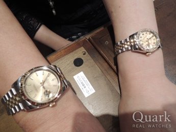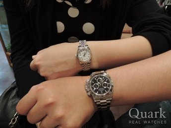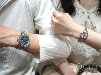 H様  この度はクォーク梅田店をご利用頂き誠に有難うござました。奥様は色々とご検討されてましたが、ご購入頂いたモデルが一番お似合いだったと思います。旦那様もイエローゴールドコンビのモデルが、雰囲気にピッタリ合っていて、とても素敵でした。店頭ではブレスレットの洗浄などもしておりますので、お気軽にお立ち寄り下さいませ。スタッフ一同、またのご来店をお待ちしております。