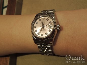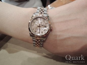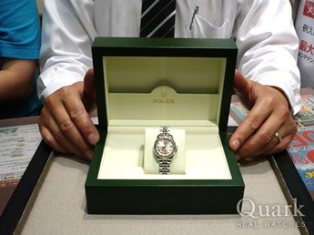 N様 この度は、クォーク梅田店をご利用頂きまして誠にありがとうございました。N様のコメント通り、ピンクの文字盤とダイヤの輝きがとてもきれいなモデルです。とてもお似合いですよ。また、購入日の翌日にご主人様もご来店・ご購入頂き本当に有難う御座いました。ありがたいコメントも頂き、大変嬉しいです。是非末永くご使用下さいませ。またお近くにお越しの際はお気軽にご主人様と梅田店に遊びにいらして下さい。