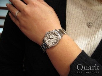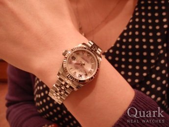 ロレックスは以前から欲しかったブランドであり、白文字盤に10ヶのダイヤが映えるこのモデルが気に入って購入しました。
