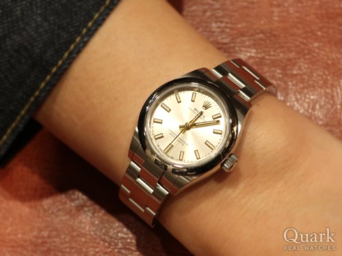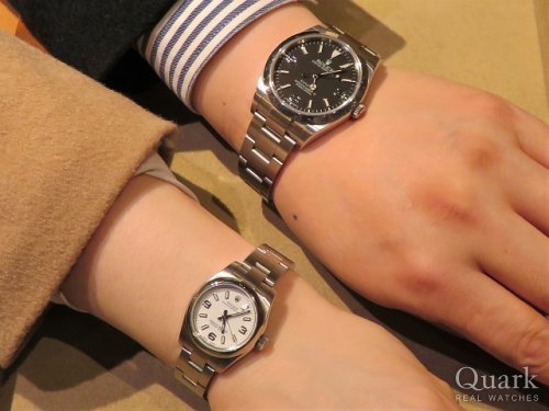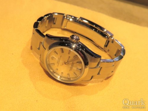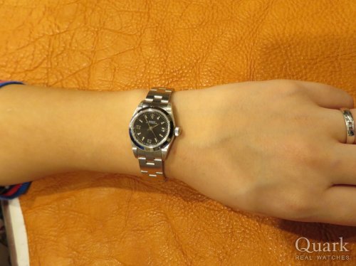 A様 この度はクォーク仙台店をご利用くださいまして誠にありがとうございます。現在は生産されていない「オイスター・パーペチュアル Ref.67180」は、現行モデルよりもさらにケースサイズが小さい24ミリの可愛らしいフォルムでございます。また、ダイヤルの文字表記が少ないため、とてもすっきりとした印象です。いただきましたコメント通り、一緒に時を刻み続けられる素晴らしいお時計でございますね。人生の節目にご購入いただいた記念の1本として活躍してくれることと存じます。今後はメンテナンス等でしっかり対応いたしますので、何卒よろしくお願い申し上げます。