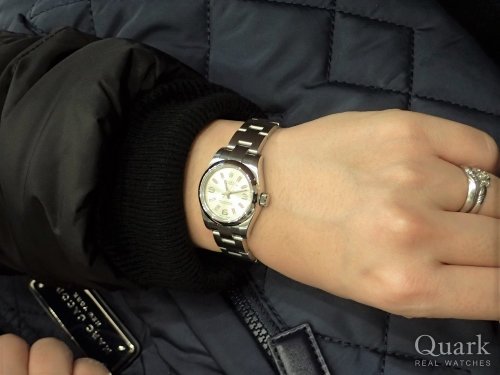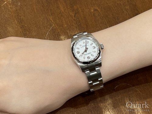 K様 この度はクォーク新宿店にてお時計をご購入いただき、誠にありがとうございました。ご購入いただきましたレディースのオイスターパーペチュアルRef.176200は、コロっとした丸っぽいデザインがとても可愛いモデルでございます。オンオフ問わずにお使いいただけるスタンダードなデザインで使い勝手も良く、現行モデルにはラインナップの無い369のアラビアインデックスもとても愛らしいですね。是非末永くご愛用いただけましたら幸いでございます。お使いいただき何かご不明な点等ございましたら、いつでもお気軽にお申し付けくださいませ。今後ともよろしくお願いいたします。