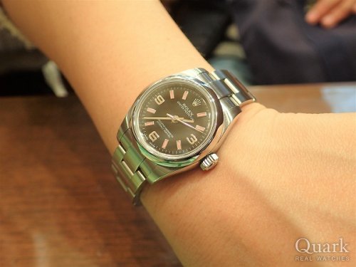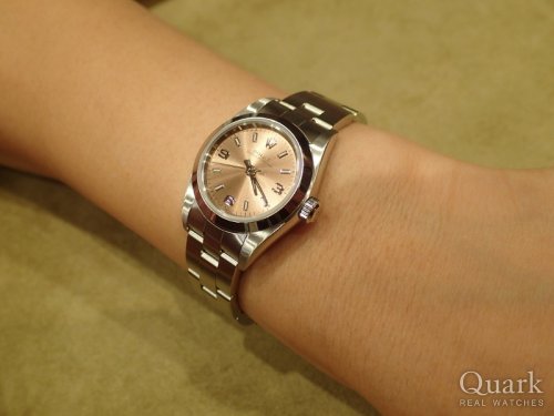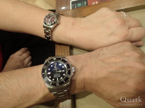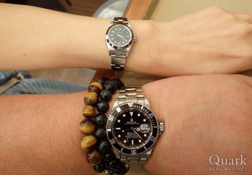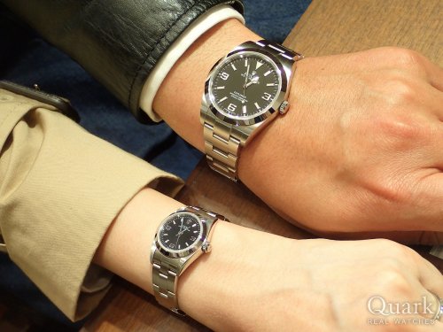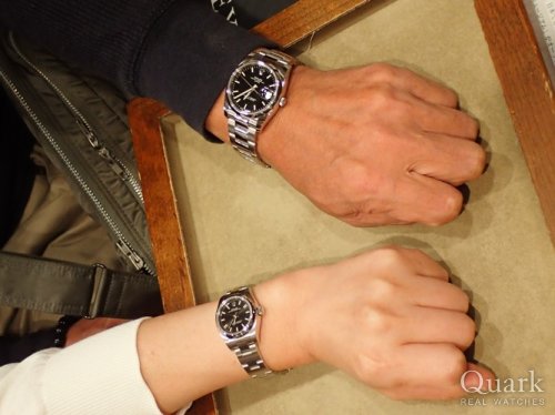 M様 この度はクォーク仙台店をご利用くださいまして誠にありがとうございます。お名前に共通点があることに勝手に運命を感じてしまいました(笑)。26mmの小振りなサイズは女性らしくエレガントな印象を与えてくれますね。サイズアップしているモデルが増えてきているなかで26mmケース径はとても少なくなってきておりますので、気に入っていただけて大変嬉しく存じます。最終的にペアウォッチとしてご愛用いただけるところも、おふたりの仲の良さが伝わって素敵でございますね。お嬢様へお譲りになる日はまだまだ先のお話しでございますが、そのときも、そしてその後も、安心してご愛用いただけますよう、しっかりお手伝いいたしますので、もし気になる事などございましたらいつでもご相談くださいませ。リューズの締め方も、何度でもご説明いたしますので、ご安心くださいませ(笑)♪店頭にてブレス洗浄、サイズ調整を無料で承っておりますので、また遊びにきてください。ラブラブなおふたりとまたお会い出来る日を楽しみにしております♡それでは今後とも末永いお付き合いのほど宜しくお願い申し上げます。