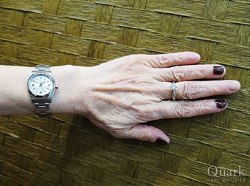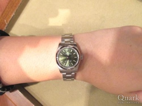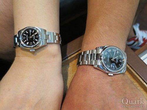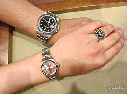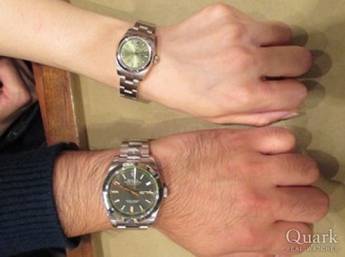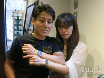 M様 この度はクォーク仙台店をご利用くださいまして誠にありがとうございます。オリーブグリーンの深みある高級感、女性らしいフェイス、M様に気に入って頂けて大変嬉しいです!オリーブグリーンにこだわるM様のお気持ち、こちらの写真からも大変感じられますね。お揃いのグリーン、素敵でございます。お問い合わせ頂いてから、実際にご覧頂くまでお時間があり、担当させて頂きました私も、M様に気に入って頂けるか心配しておりましたが、ご試着されたときのM様の笑顔を拝見でき安心致しました。ご試着頂いた時から、すでにM様にしっかりと馴染んでおり、大変お似合いでございました。M様を呼んでいたのは間違いなくこの子です!!(笑)また、ご紹介いただきましたM様にも改めて御礼申し上げます。今回の1本をきっかけにお二人のロレックスライフを楽しんで頂けましたら幸いでございます。仙台でお買い物等の際は是非お店にも遊びに来てください。ブレス洗浄、サイズ調整を無料で承っております。また、ご不明点等ございましたらお気軽に高橋までお申し付けくださいませ。今後とも末長いお付き合いの程宜しくお願い申し上げます。