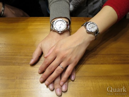 D様 この度はクォーク新宿店をご利用頂きまして誠に有難うございます。お二人の仲睦まじい時間を共有させていただき、私も羨ましい気持ちになりながら楽しませていただきました。ペアウォッチとしても非常に人気のあるラインとなりますので、末永くお使い頂ければ幸いです。新宿へお越しの際は、パートナー様とご一緒に是非遊びにいらして下さい。今後もしっかりサポートさせていただきますので、末永いお付き合いの程宜しくお願い致します。 クォーク新宿店 千葉