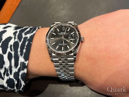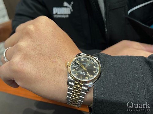 この度はクォーク銀座店をご利用いただきありがとうございました!デイトジャスト36は腕なじみの良いサイズ感とドレスウォッチらしい上品さが特徴的で特にブライトブラック文字盤はシックな高級感が素敵です。また、お探しのお時計がございましたらお気軽にお問合せくださいませ!今後ともよろしくお願い申し上げます。 クォーク銀座店 菊地
