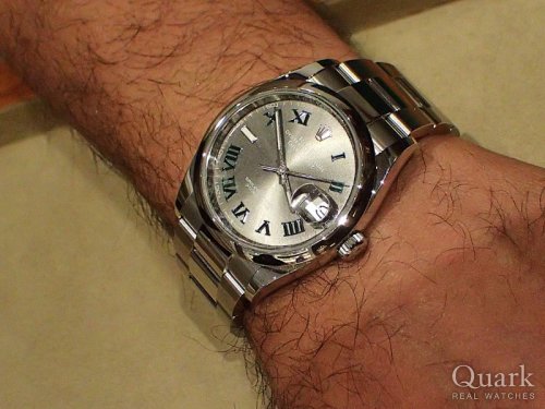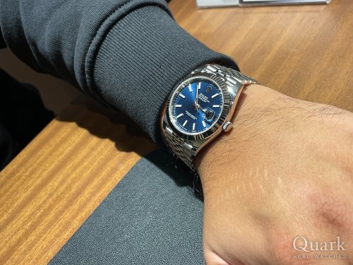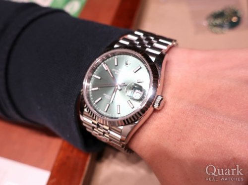 thank you very much for visiting Quark Ginza. The 36mm Date just with the gray Roman dial is a highly popular model. The use of green Roman numerals gives this watch a unique character that perfectly matches your style. It was truly an honor to assist you in choosing this timepiece. I hope it will accompany you for many years to come. If you encounter any issues while using it, please feel free to contact us anytime. We are always here to serve you. Thank you again!
