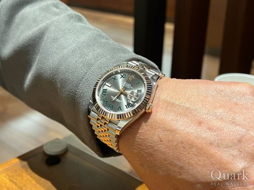 以前もデイトジャストを使っていましたが、再び欲しくなったので探していました。今回はディスコンになったフルーテッドモチーフで・・グリーンが好きなのでこのデザイン一択でした!