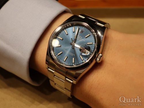K様、この度はクォーク仙台店をご利用いただきまして誠にありがとうございました。この度お選びいただきました『DATEJUST36 Ref.126234』は美しいブライトブルー文字盤が鮮やかに輝くカラーリングで、照明下や自然光下でも違う見え方をする魅力的な文字盤です。また、フル―テッドベゼルは山型のカットが幾重にも重ねられ、角度によって異なる立体感や表情を変えるエレガントさがございます。お探しいただいていた1本だけあって、即決で大変驚きましたが、永遠の王道モデルであるデイトジャストを、是非末永くお楽しみいただけますと幸いです。なお、私どもではブレス洗浄サービスを行っておりますので、お近くへお越しの際はお気軽にご用命くださいませ。今後とも末永いお付き合いのほど、よろしくお願い申し上げます。