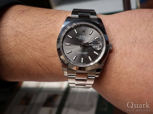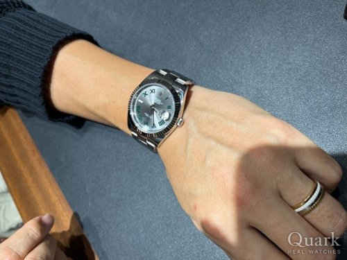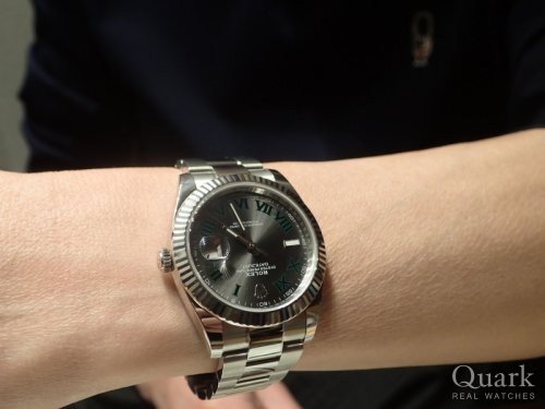 K様、この度はクォーク銀座店をご利用頂き誠に有難うございます。ご購入頂きましたデイトジャストのスレート文字盤は着けやすいシンプルなデザインかつ落ち着いた色合いでフォーマル、カジュアルと場面を問わずお使いいただけるモデルでございます。今回が初のロレックスとの事で、末永くご愛用頂けましたら幸いでございます。今後ともしっかりとサポートさせて頂きますので、何か気になる事がございましたら遠慮なくご相談下さいませ。今後ともどうぞ宜しくお願い致します。 クォーク銀座店 櫻井