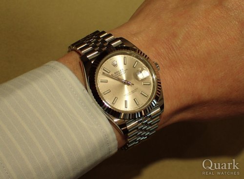 本日、デイトジャスト41を購入しました。 アクセサリー感覚での着用感とシルバーと言うベースが気に入りました。大切に使わせていただきます。