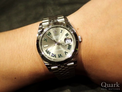 O様、この度はクォーク仙台店をご利用いただきまして誠にありがとうございます。O様がお選びになられたモデル「Ref.126300」は、2017年より生産が開始されたデイトジャストシリーズ最大のケース径41mmを誇る大人気モデルでございます。また、ダイヤルのスレートローマは海外人気がとても高く、最近ではテニスコートに合うデザインから「ウィンブルドン」の愛称で親しまれております。休日のご使用がメインと伺っておりましたが、是非ビジネスシーンにおいても末永くご愛用いただけましたら幸いでございます。尚、私どもではブレス洗浄サービスを行っておりますので、仙台駅方面へお越しの際は、是非お立寄りくださいませ。どうぞ、今後とも変わらぬご愛顧を賜ります様、宜しくお願い申し上げます。 クォーク仙台 沼澤